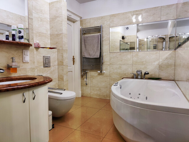 Es besteht aus 3 Schlafzimmern, Wohnzimmer, Küche, 2 Bädern, Ankleidezimmer, Treppenhaus und Flur.