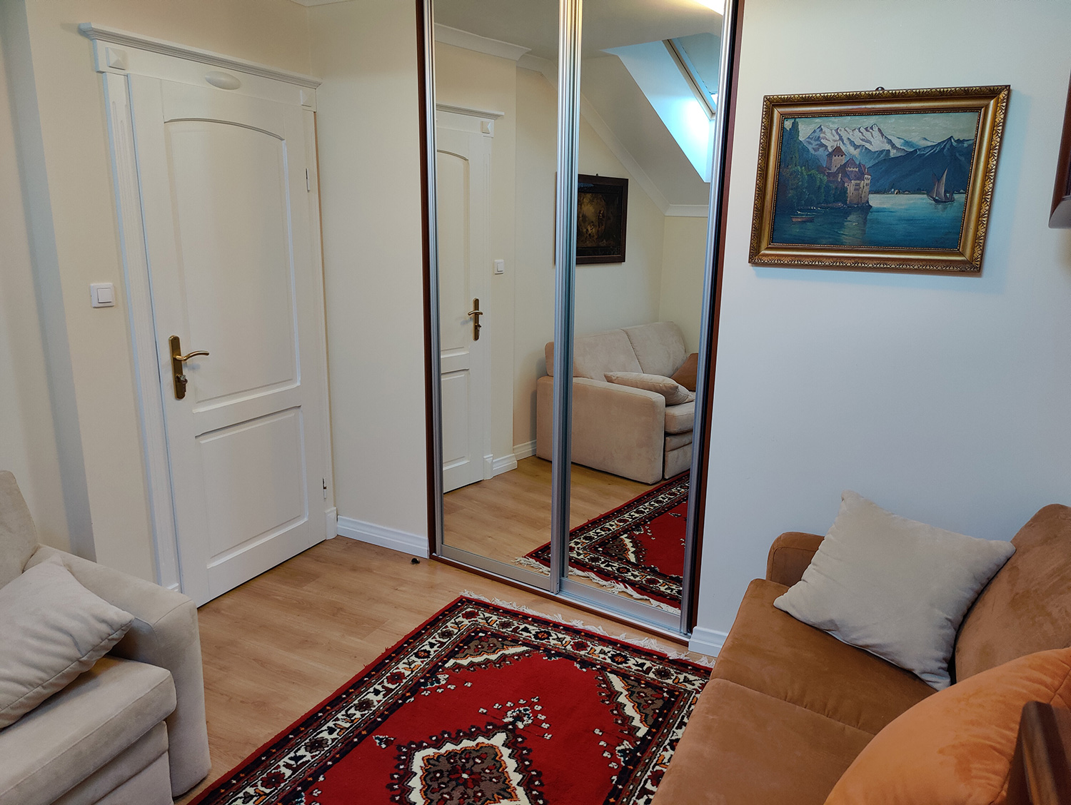 W jego skład wchodzą 3 sypialnie, pokój dzienny , kuchnia, 2 łazienki, garderoba, klatka schodowa i hall. Ogrzewanie gazowe a nastrój zapewni kominek Do wyłącznej dyspozycji właścicieli tej nieruchomości jest piękny kawałek działki z tarasem oraz prawo do korzystania z 2 miejsc parkingowych tuz przy budynku.