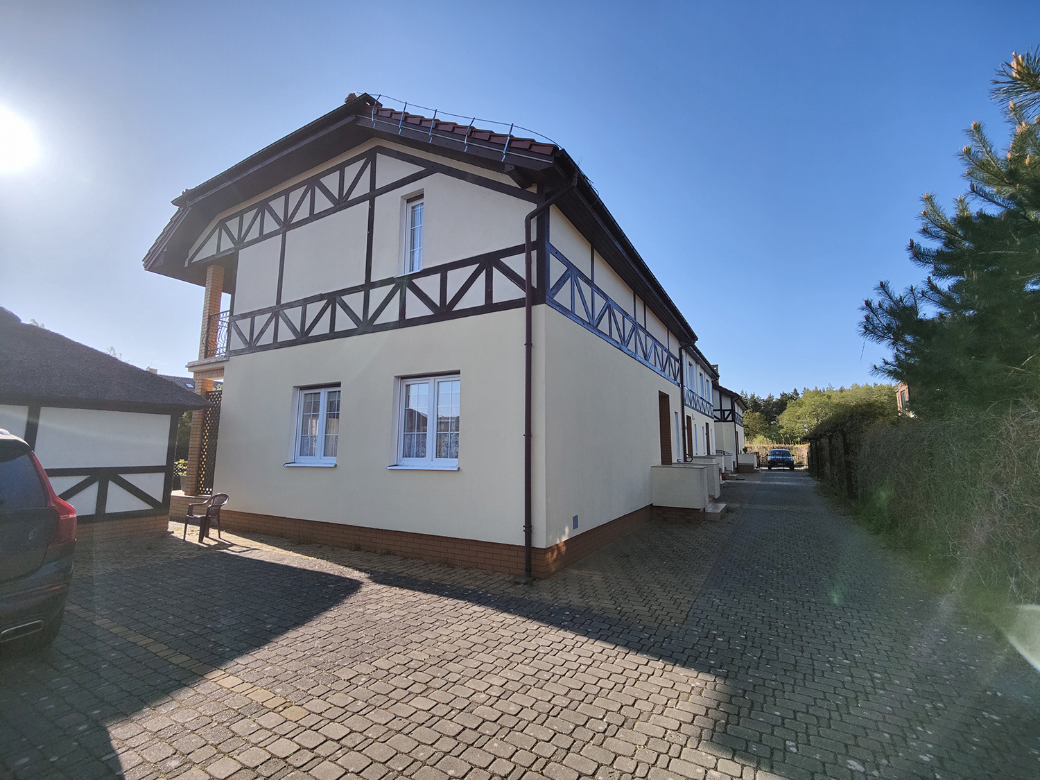 Dom w zabudowie szeregowej blisko plaży w Grzybowie.