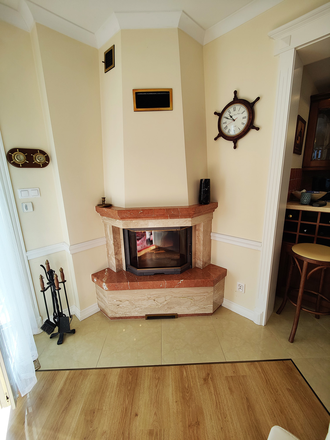 Gasheizung und ein Kamin sorgen für das Ambiente.