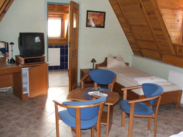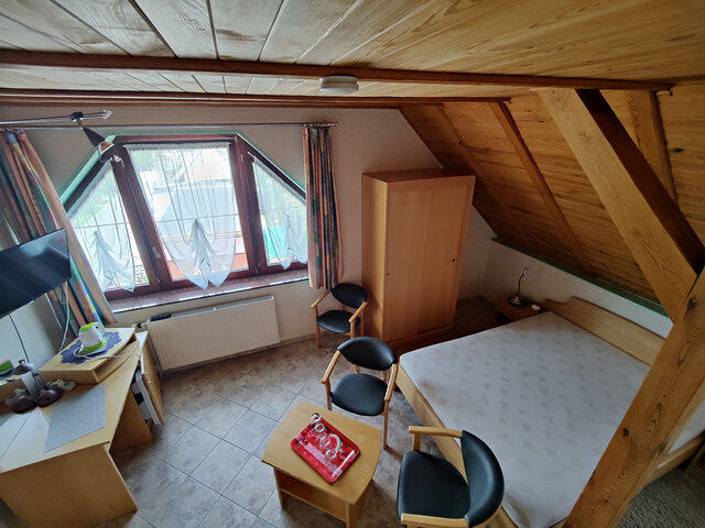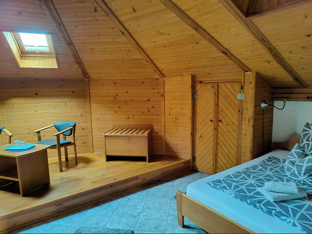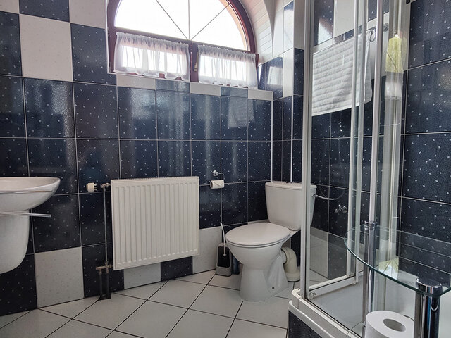 Das Gebäude besteht aus 11 Zimmern mit Bädern für ca. 30 Betten, einem großen Restaurantbereich (ca. 91 m2), Kücheneinrichtungen (professionell ausgestattet), Sozialeinrichtungen einschließlich zusätzlicher Toiletten sowie Lager- und Technikräumen - mit Waschküche und Heizungsraum für Ölheizung mit Solaranlage und RES.