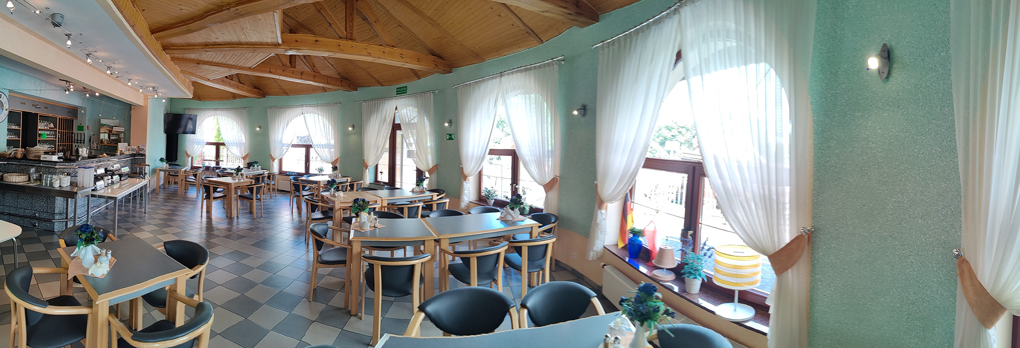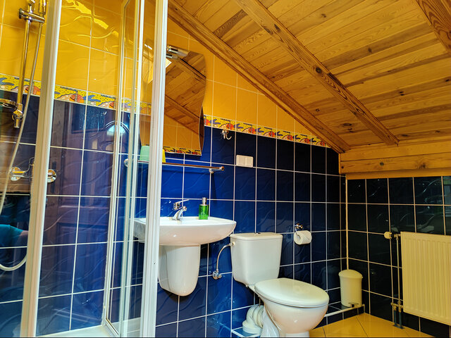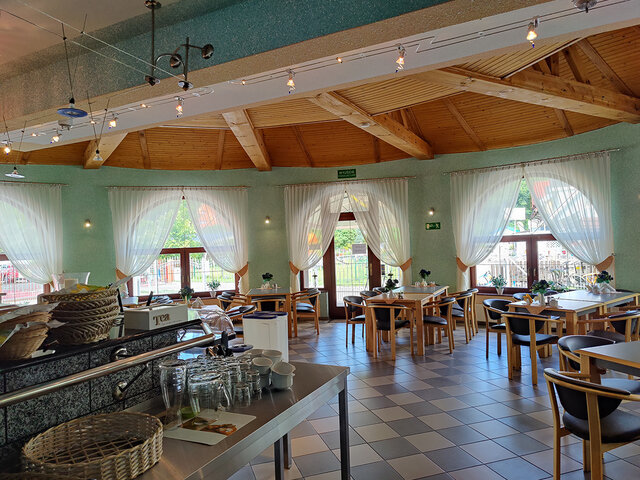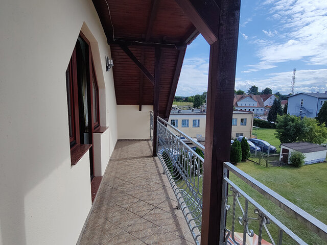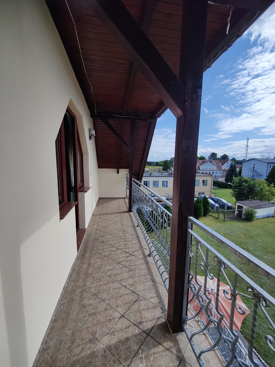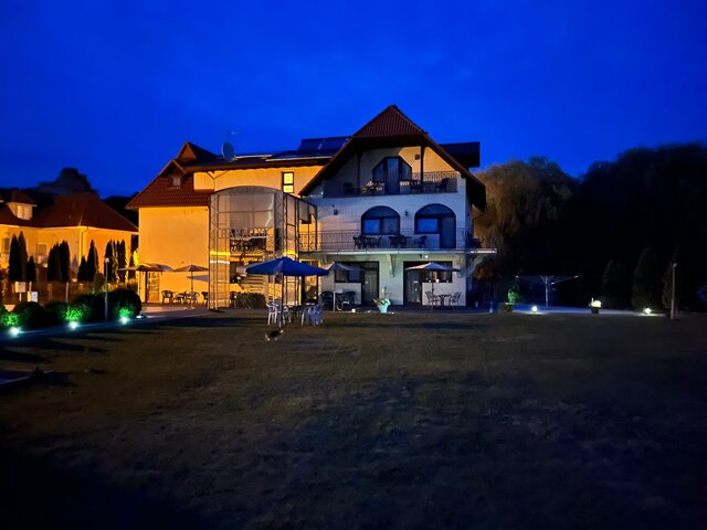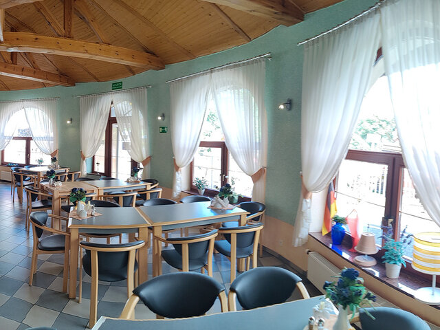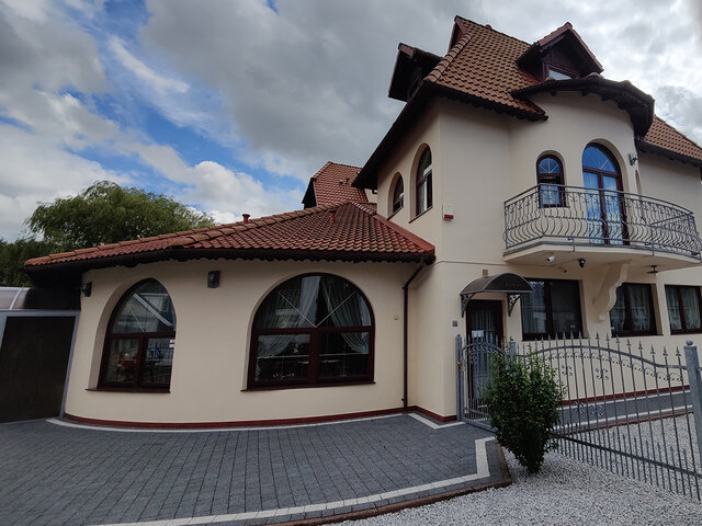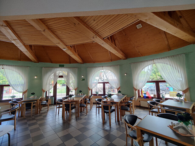 Budynek składa się z 11 pokoi z łazienkami, na ok. 30 miejsc noclegowych, dużą częścią restauracyjną (ca. 91 m2), zapleczem kuchennym (profesjonalnie wyposażonym), socjalnym w tym dodatkowymi toaletami, i magazynowym i technicznym – z pralnią i kotłownia na piec olejowy z system solarnym oraz OZE.