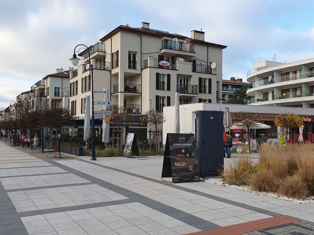 Es handelt sich um eine sehr begehrte Lage direkt an der Strandpromenade, direkt gegenüber von grossen Hotels mit einem Wasserparadies (öffentlicher Badepark) sowie in unmittelbarer Ostseenähe.