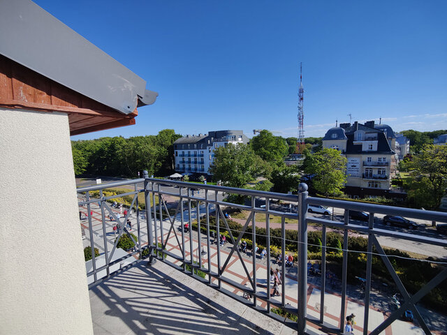Angeboten wird eine Maisonette-Wohnung im dritten und vierten Stock des Ferienparks "Baltic Park" direkt an der Strandpromenade im touristischen Zentrum von Swinemünde auf der Ostseeinsel Usedom. Die Immobilie ist mit einem Aufzug zu erreichen.